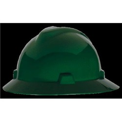 Mine Safety Appliance V-Gard 454735 Green Polyethylene Non-Slotted Full Brim Hard Hat, Staz-On