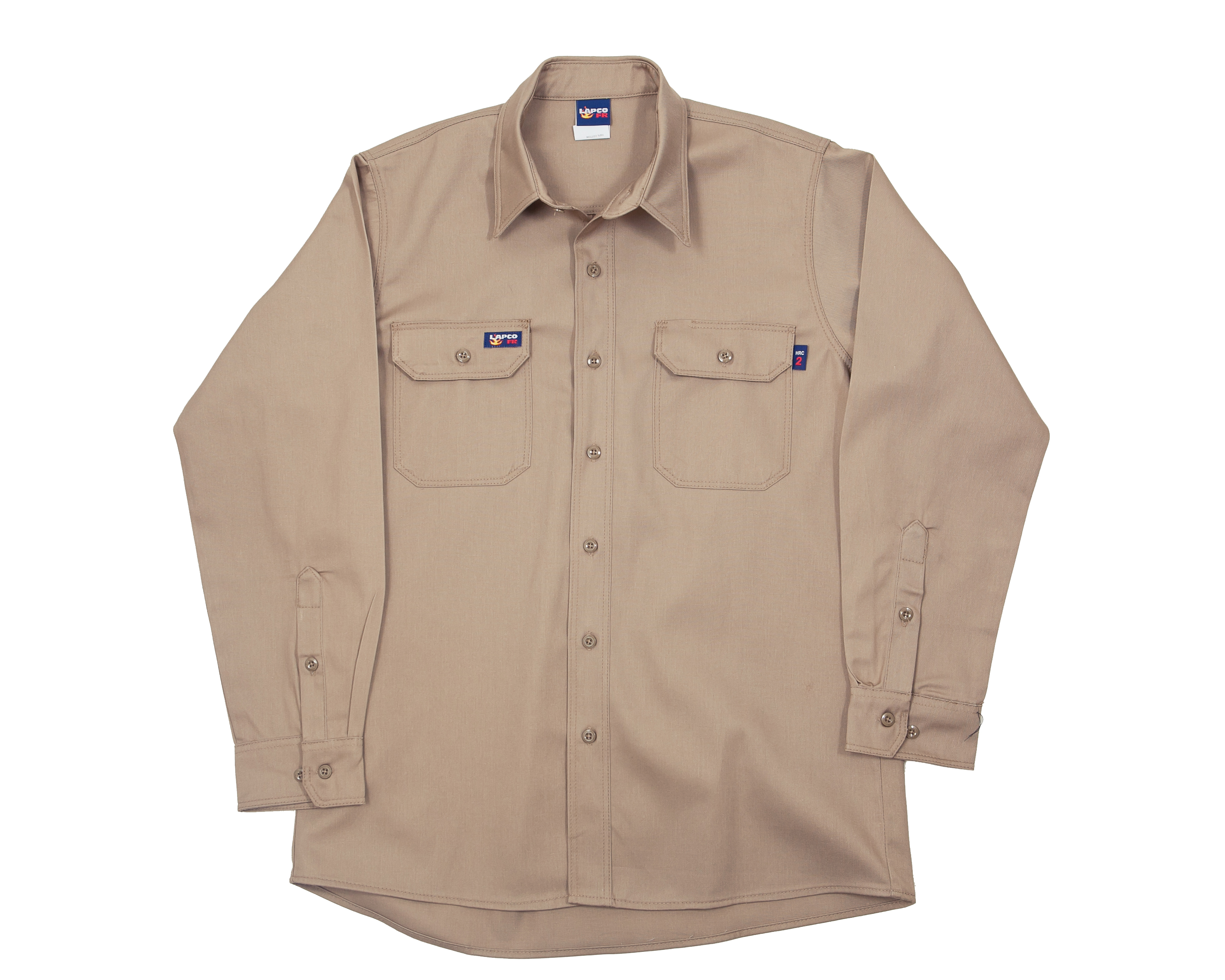 Lapco IKH7-2XL-REG Shirt, Flame Retardant, Uniform, Gender: Men, Size: 2XL, 100% Cotton, Khaki, ATPV Rating: 8.7 cal./cm2, Closure Type: Button, Weight: 7 oz