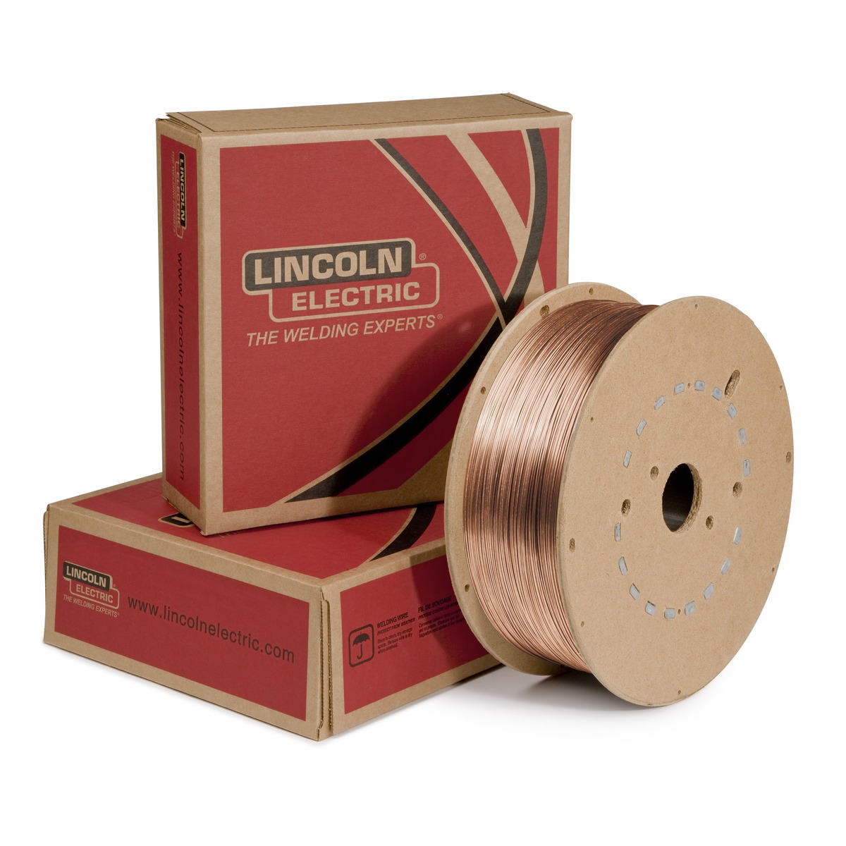 Lincoln® SuperArc® L-59® ED032814 Mild Steel Welding Wire, Gas Shielded, Diameter: 0.052 Inch, Current Type: DC+, Amperage: 300 - 430 amp, Package: 60 lb Fiber Spool, AWS Class: AWS A5.18/A5.18M: 2005: ER70S-6, Copper-Coated, Tensile Strength: 485 MPa (As Welded), Yield Strength: 400 MPa (As Welded), Elongation in 2" (%): 22% (As Welded), Charpy V-Notch: 27 ft.-lb. At -20 deg F, Welding Process: MIG (GMAW And SAW), Weld Metal Composition: 0.06 -0.15% Carbon (C), 1.4 -1.85% Manganese (Mn), 0.8-1.15% Silicon (Si), 0.035% Sulphur (S), 0.025% Phosphorus (P), 0.5% Copper (Cu), 0.15% Nickel (Ni), 0.15% Chromium (Cr), 0.15% Molybdenum (Mo), 0.03% Vanadium (V)