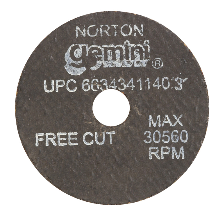 Get a consistent performance quality and impressive bang for your buck out of this Gemini A AO Type 01/41 small diameter cut-off wheel <=3". Its high-quality aluminum oxide grain produces a versatile abrasive face that's ideal for both tough cuts through hard carbon steels and for precise incisions into softer alloys. This wheel's ultra-thin side reinforcing helps you make a straight, thin cut without encumbering the cutting edge. Ideal for 400-series stainless steel, this cutting wheel works from either your portable cut off tool or a handheld power drill for maximum convenience.