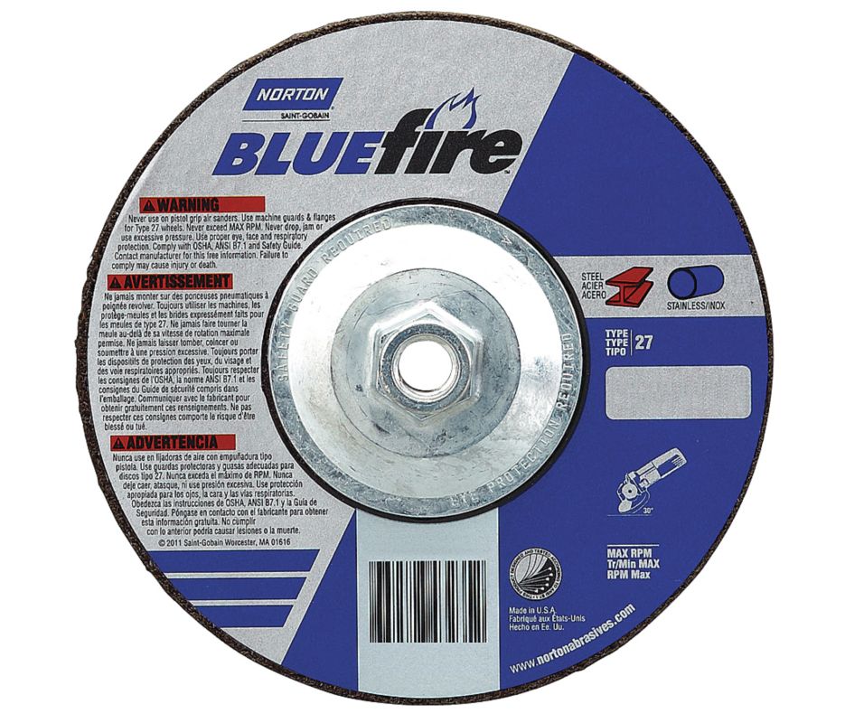 6 x 1/4 x 5/8 - 11 In. BlueFire Foundry HD Grinding Wheel 24 Grit Zirconia Alumina/Aluminum Oxide Type 27