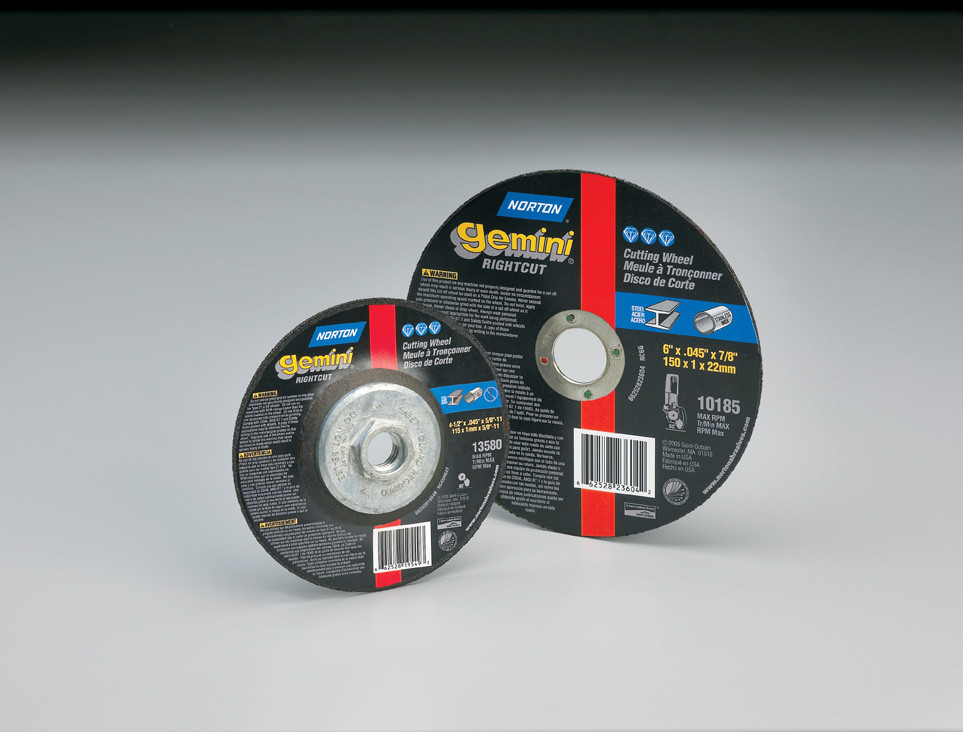 NortonĀ® GeminiĀ® 66252843597 Grinding Wheel, Type 27 Depressed Center, Outside Diameter: 5 Inch, Thickness: 1/4 Inch, Arbor Hole / Thread Size: 5/8-11 Thread, Abrasive Type: Aluminum Oxide, Max Speed: 12225 Rpm, Mounting: Threaded, Product / Materials Abraded: Metal/Stainless Steel