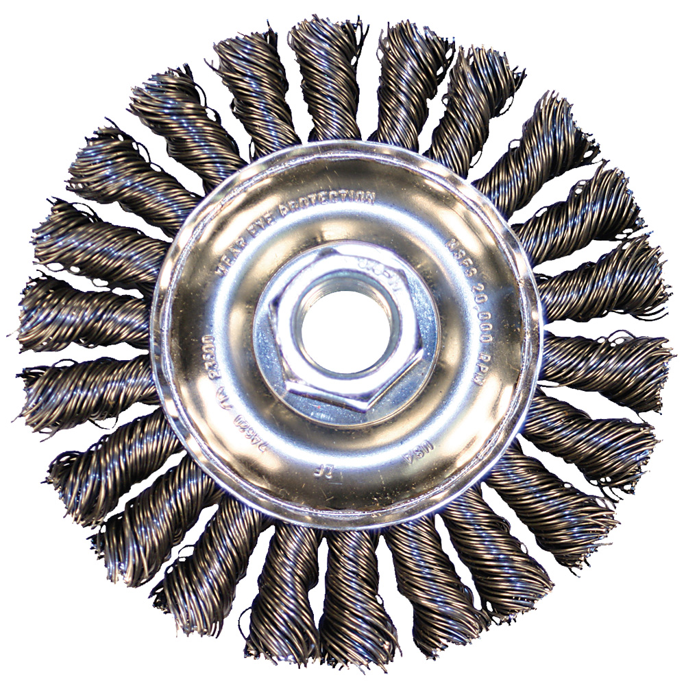 PFERD 82478 Wire Wheel Brush, Knotted, Diameter: 6 Inch, Face Width: 1/2 Inch, Wire Size: 0.023 Inch, Trim Length: 1-1/4 Inch, No. of Knots: 30, Arbor Size: 5/8-11 UNC, Max. RPM: 9000, Mounting: Threaded, Filament Material: Carbon Steel