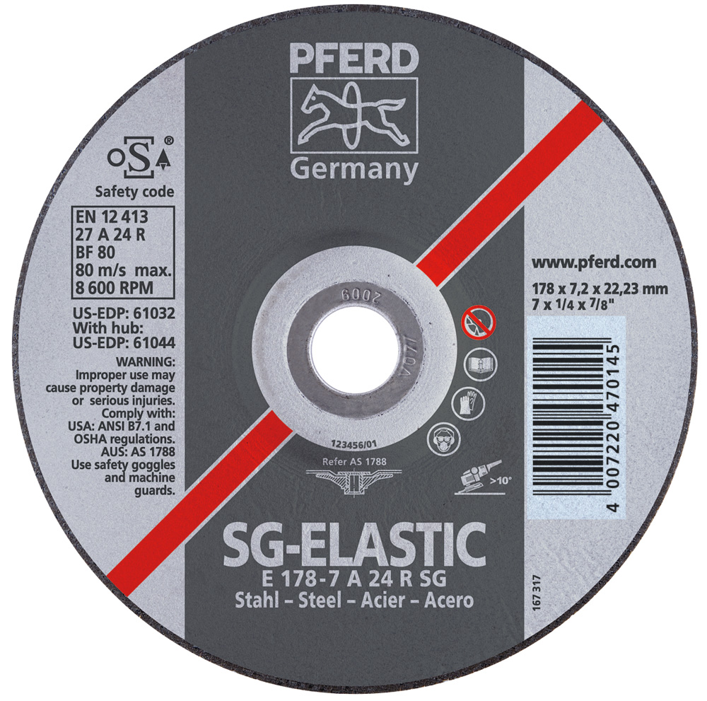 Pferd Grinding Wheels For Steel, Cast Iron - Performance Line Sg-Elastic: A 24 R Sg - Type 27 Depressed Center 61037 PFE61037