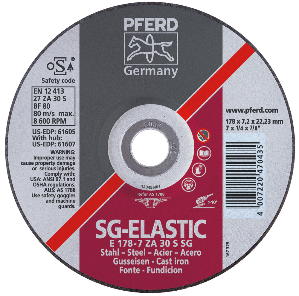 Performance grinding wheel with tough Zirconia abrasive grain providing outstanding stock removal and very long tool life.