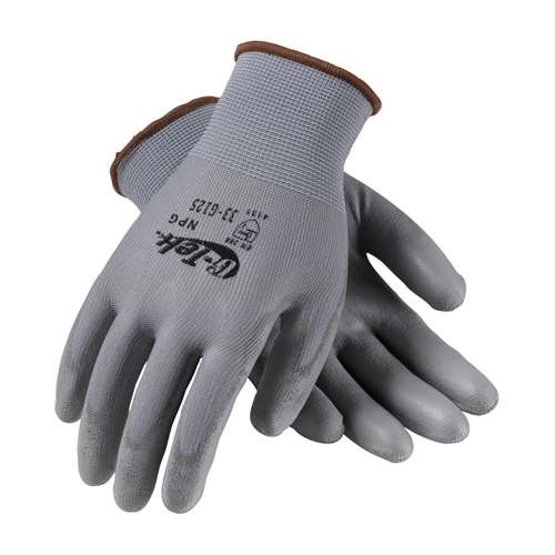 G-TEK NPG, GRAY POLYURETHANE COATED PALM & FINGERS ON GRAY SEAMLESS KNIT NYLON
