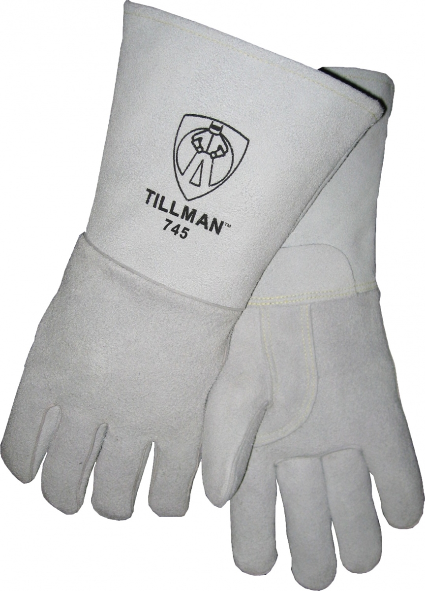 14"" elkskin split resists heat. Cotton/foam lined back for added heat protection. Unlined palm. Reinforced thumb for extra strength. Welted fingers and Kevlar thread protect seams